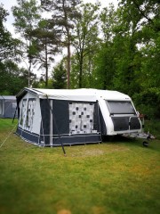 Er zit een hele mooie voortent bij die nog maar 3 jaar oud is.