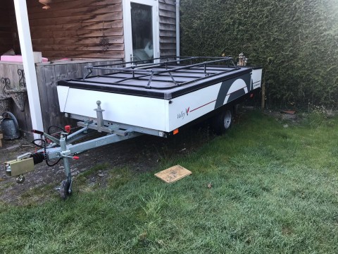 Extra groot bed, 220x160, extra matras. Koelkast, opbergschorten, speciale fietsendrager, TUV 100km keuring, reservewiel, electriciteitssnoer met stekkerdoos en verlengsnoer, twee kampeerstoelen en tafel.