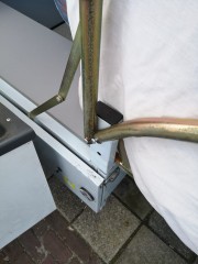 Aan één kant is een stang licht kromgebogen, maar dat verstoort de werking niet. Er moet daar een nieuw schroefje in worden geplaatst (zie foto)
