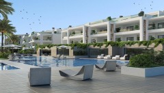 Off-plan two-bedroom ground floor apartment for sale in The Links in La Alcaidesa. These contemporary apartments feature a sleek modern design. Bright and airy open interiors give way to outside spaces that integrate seamlessly. These high-end modern apartments are equipped with high-quality features designed for your comfort. The use of brands like Porcelanosa, Schücco, Siemens o Gaggenau, reflect the quality of these apartments. Large windows allow natural light to flood in, the fully equipped open concept kitchens flow effortlessly into the living and dining areas, bedrooms feature fitted wardrobes and the spacious master bedroom includes an en-suite bathroom. Gibraltar, the beach, the lighthouse, and the golf course provide unparalleled views.
