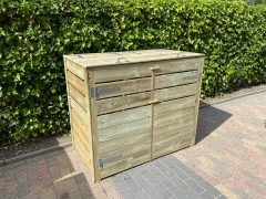 Op maat gemaakte container ombouw voor 1, 2, 3 of 4 containers van geïmpregneerde schutting planken. COMPLEET met hang en sluitwerk!