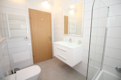 Eerste verdieping: slaapkamer 1 (tweepersoonsbed) slaapkamer 2 met stapelbed en onderschuifbed (3 slaapplaatsen) met ruim balkon. Beide slaapkamers ingebouwde kasten. Ruime 2e badkamer met ligbad.